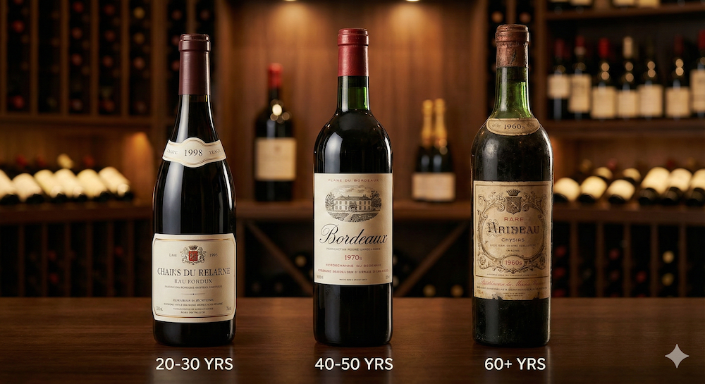 20年、30年、あるいは60年。あなたが贈る相手が人生を歩んできたのと同じ期間、そのワインは静かな地下セラーで熟成され、この日のために眠り続けてきました。ボトルの汚れやラベルの色褪せさえも、長い年月を耐え抜いてきた証であり、勲章です。