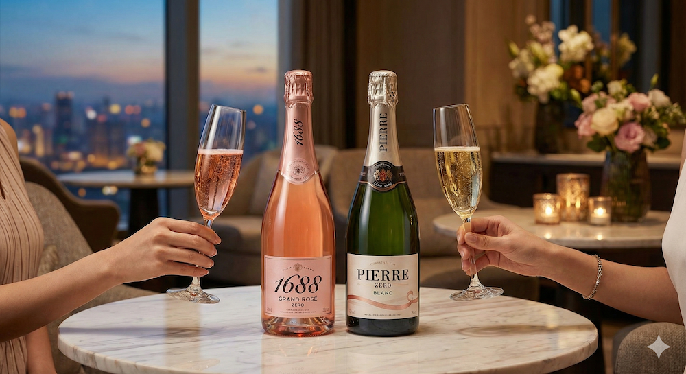 「1688 Grand Rose」や「Pierre Zero」など、高級ホテルでも提供されているノンアルコール・スパークリングは、ボトルの高級感が本物と遜色ありません。
